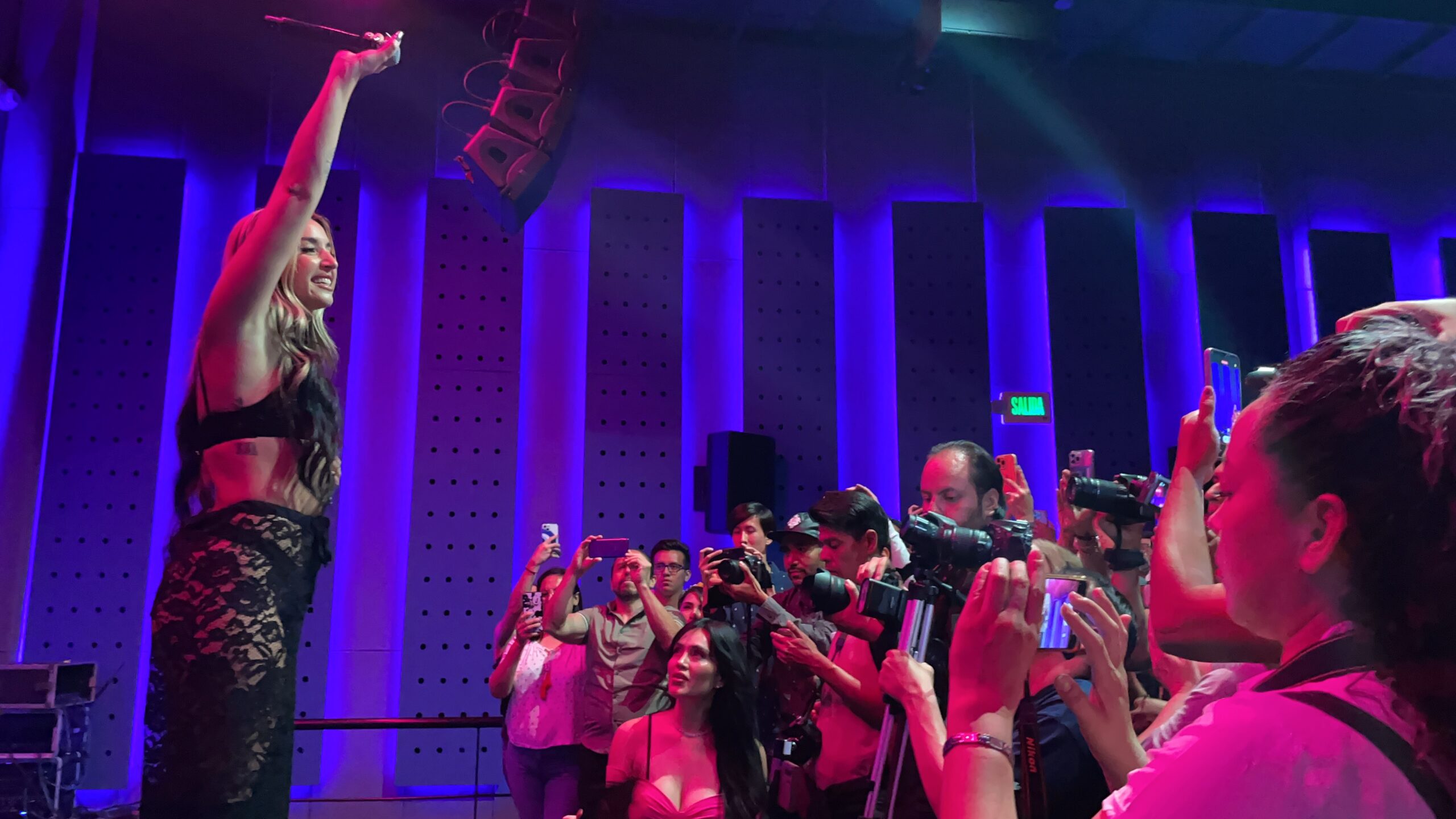 En este showcase exclusivo la intérprete de ‘Niña de la escuela’ compartió las siguientes palabras a los asistentes: “Para mí es súper importante estar aquí, estoy comenzando mi carrera en México y me ha parecido todo súper bonito y estimulante, sé que queda mucho trabajo por hacer…”