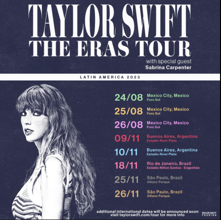 Taylor Swift se ha consolidado como de una las artistas más queridas y exitosas de los últimos años, sin embargo no había traído ninguno de sus tours pasados a tierras latinas, este 2023 la artista se presentará en México, Brasil y Argentina.